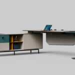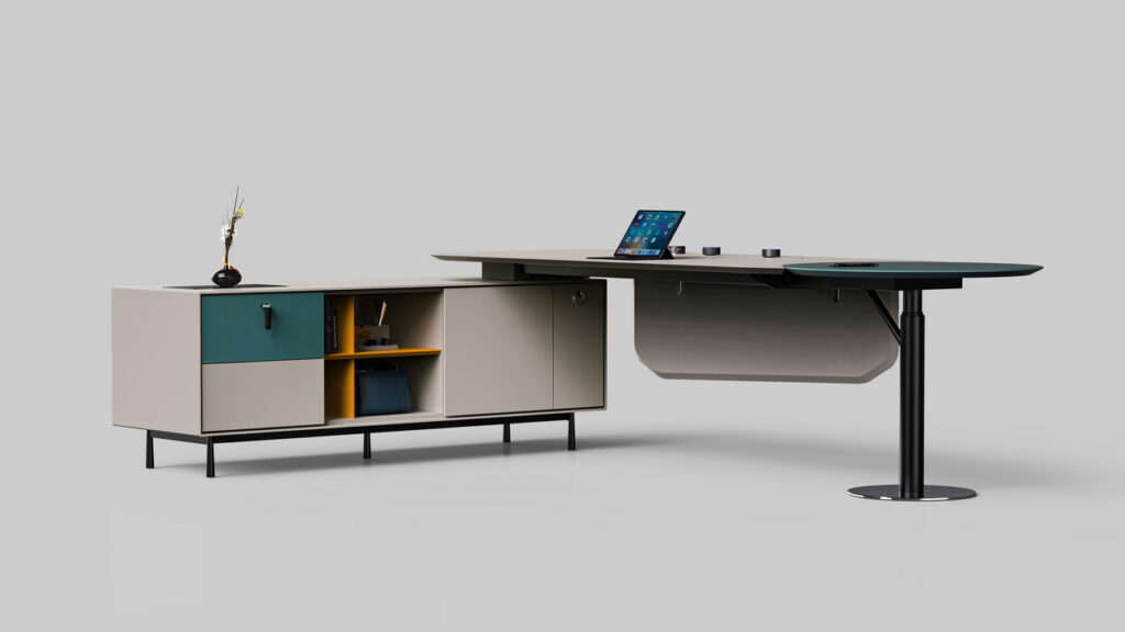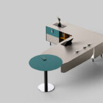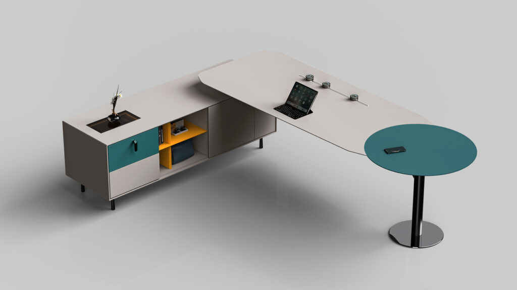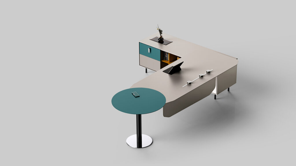 1. The tabletop features beveled, rounded edges, with the designer intentionally revealing the natural birch grain of the marine plywood substrate to create distinct visual layers, skillfully crafting a space that feels close to nature.